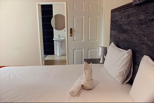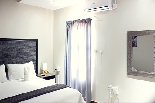 Guest room with a King size bed | Ensuited with shower | Flat screen TV 32 inch | Air conditioned room | Clothes rack .